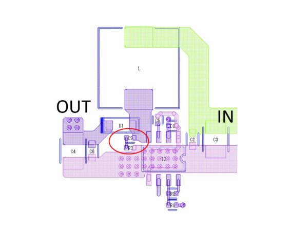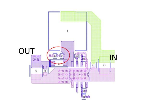 スナバ回路は、ICのスイッチング端子とGND端子の直近に配置することで、効果的にノイズを吸収することが出来ます。電源ループを小さくする事で、ノイズを低減できます。