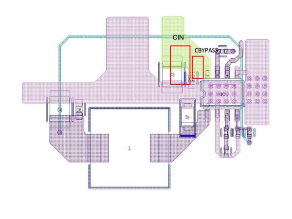 高周波のインピーダンスを下げるCBYPASSは、CINよりICに近い位置に配置する必要あります。